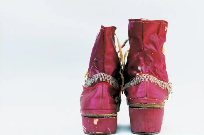 Kahlo’s leg was amputated in 1953. She designed this prosthetic leg with embroidered red lace-up boots and a bell attached
